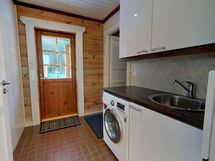 -pesukone, kuivauskaappi vaatteille, silitysrauta ja -lauta, pölynimuri