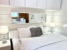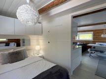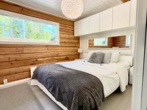Päärakennuksessa on yksi makuuhuone parisängyllä ja kahden hengen vuodesohvalla, sekä olohuoneessa toinen vuodesohva kahdelle. Lisämaksusta käytettävissä on moderni piha-aitta, jossa on kaksi makuuhuonetta omilla sisäänkäynneillä. Aitan huoneissa lattiaan asti ulottuvat maisemaikkunat, joista avautuu upeat näkymät järvelle. Molemmista aitan huoneista löytyy lämmitys. Aitasta löytyy neljälle henkilölle sängyt , jotka voidaan erottaa toisistaan. Yhteensä makuupaikkoja on 10 henkilölle (6 sänkypaikkaa ja 4 vuodesohvapaikkaa).