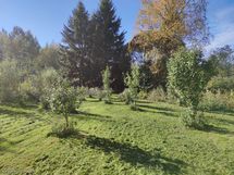 Pihapiiri on aurinkoinen ja suojaisa. Tontilla kasvaa useita omena-, luumu- ja kirsikkapuita sekä runsaasti marjapensaita: aroniaa, karviaisia, vadelmia, karhunvatukkaa ja raparperia. Täällä voit nauttia omasta sadosta, kasvattaa puutarhaa tai vain rentoutua luonnon helmassa. Vain yksi naapuri lisää yksityisyyttä.