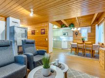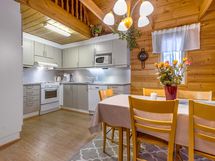 Hyvin varustelusta keittiöstä löytyy jääkaappi/pakastin, mikroaaltouuni, liesi/uuni, kahvinkeitin, vedenkeitin, leivänpaahdin, astianpesukone, astiasto 12 hengelle. Runsaasti eri kokoisia kattiloita, paistinpannu, uunivuokia. Tarjoamme myös alkupakkaukset wc- ja talouspaperia, leivinpaperia ja kahvin suodatinpaperia.