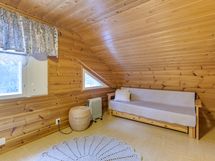 Yläkerrassa on makuuhuone, aula sekä erillinen wc että parveke.