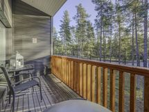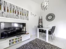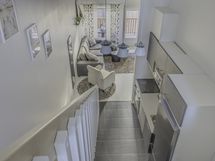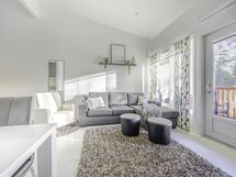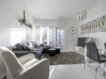 Huoneiston alakerrassa on tyylikäs olohuone, ruokailutila, keittiö, makuuhuone, kylpyhuone ja sauna. Olohuoneesta käynti isolle parvekkeelle. Yläkerrassa on parvi ja erillinen makuutila.