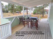 Merinäköala Mökki rantadyyni paljulla kalajoen hiekkasärkillä hiekkarannalla Kalajoen ehdottomasti parhaalla paikalla. Kokoa mökillä 94m2. Terasseja on mökin ympärillä 4 sivulla yli 70m2. Kalajoen komeimmalla merimaisemalla. 10 aikuiselle ja vauvalle. 3 oikeaa makuuhuonetta. Kaikki sängyt ovat oikeita runko tai jenkkisänkyjä. Keittiössä on kaikki mitä tarvitset lomalla. Palju kuuluu vuokraan. 2 vessaa 2 tv:tä Terassia on yli 70m2 kiertää koko talon. 3 katettua terassia eri puolilla taloa. iv kone iso sauna 100 kg kivitornilla ei siis hikikoppi. Kesävarusteet perus hinnassa:Palju, suplauta, kajakki, Aurinkotuolit, krillit Talvella pihalta hiihtämään tai mootorikelkailemaan. Upeat pulkkamäet läheisillä dyyneillä. Sähköauton type2 laturi seinässä. kysy lisää.