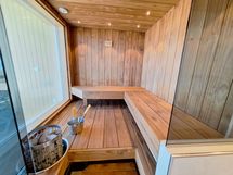 Huoneiston sisustuksessa on huomioitu yrityskäyttö, laatu matkailu, perheet sekä ryhmämatkailu. Poreallas Novitek halti koko 230*230 1700L 7 henkeä.
