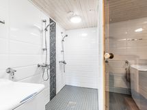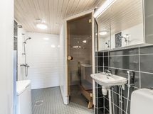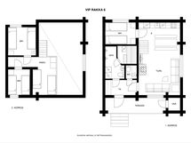 Vuodepaikat: 8 runkopatjasänkyä (2kpl / mh, 2 parvella). Wc:t: 2 erillistä. Sähkösauna, pesuhuoneessa 2 suihkua.