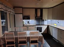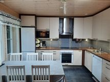 Tilaa isolle ruokapöydälle, Suuri tiskipöytä, Paljon kaappitilaa, Halogeenivalot, Paljon työskentelytilaa, Laminaattitasot, Astianpesukone, Keraaminen liesi, Sähköliesi, Liesi tai uuni erikseen, Liesituuletin, Jääkaappi, Viileäkaappi, Pakastin, Jää-pakastinkaappi