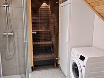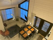 Tähän Premium-varusteltuun 57m2 kulmahuoneistoon mahtuu viettämään lomaa isommallakin porukalla; kaksi makuuhuonetta eri kerroksissa takaa niiden yksityisyyden ja yhteensä on 4 sänkyä ja 2 mahtuu sohvalle. Kokonaisuuden kruunaa oma saunaosasto unohtamatta täyskorkeaa huonekorkeutta olohuoneessa. Oma terassi puolestaan tuo huoneistoon lisäneliöitä ja on loistava vilvoittelupaikka löylyjen jälkeen. Huoneistossa on täysin varusteltu keittiö 8 hengelle, joten tunturipäivän jälkeen voit halutessasi tehdä ruuan omassa keittiössä, tai nauttia aivan kivenheiton päässä sijaitsevista Levin ravintoloista.