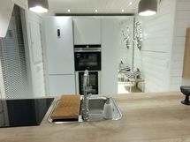 - Tilaa isolle ruokapöydälle, Paljon kaappitilaa, Paljon työskentelytilaa, Suuri tiskipöytä, Lasikaapit, Laminaattitasot, Astianpesukone, Sähköliesi, Induktioliesi, Liesikupu, Liesisaareke, Liesituuletin, Jääkaappi, Pakastin