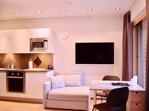 Huoneistosta löytyy kaikki tarvittavat varusteet mukavan loman viettoon, mm. wifi-yhteys, sauna, kuivauskaappi, pyykinpesukone, älytelevisio, hiustenkuivaaja, silitysrauta ja -lauta. Keittiössä kattava varustelu.