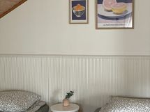Asunnossa on: • 2 erillistä sänkyä (80x200), jotka voi yhdistää parisängyksi • Lisäpatja kolmannelle henkilölle 20 € maksusta ja jos oikein tykkää ahtaasti asustaa myös neljännelle henkilölle patja 20€ lisämaksusta. • Viilentävä ilmastointi • Pyykinpesukone • Liinavaatteet ja pyyhkeet sisältyvät • Lemmikit sallittu