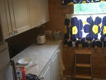 Hyvä ja riittävä vaikka jatkuvaan asumiseen. Keittiössäkin hyvä varustus "kuin kotona" Liinavaatteet itseltä. Ulkoiluun on potkukelkat talvella ja polkupyörät (mummo/vanhempi) kesäksi.