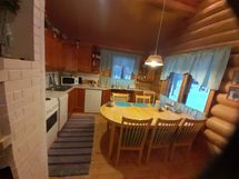 Kodikas, terassillinen hirsimökki, jossa kaksi makuuhuonetta, nukkumaparvi/huone, yhdistetty keittiö ja olohuone, 2 x wc sekä pesuhuone ja sauna. Lisäksi suksien huoltotila, puuvarasto sekä autotalli. Pihalla autolle lämmitystolppa.