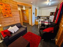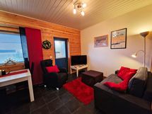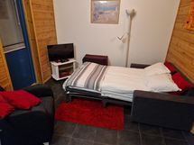 -olohuone: 160 cm leveä vuodesohva (nukkumaleveys 120cm), äly-TV ja ns lepomallin nojatuoli sisäänrakennetulla rahilla. Wifi-mokkula on olohuoneessa ja sen tuottama nopea verkko kattaa koko huoneiston. Lisäksi olohuoneessa on levitettävä rahi, josta saa varavuoteen (soveltuu lähinnä lapselle tai pienelle aikuiselle)