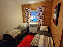 -makuuhuone: kaksi erillistä 80 cm leveätä sänkyä sekä suuri peilikaappi, johon omat vaatteet mahtuvat mainiosti. Toinen sänky on puolipehmeä, toinen taas kova, mutta siinä on paksu älypatja, joka muotoutuu nukkujan profiilin mukaan ja siten tukee optimaalista unta.