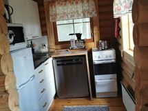 Sähköliesi, jääkaappi-pakastin, astianpesukone, mikroaaltouuni, kahvinkeitin, vedenkeitin ja taulu-TV. Astiasto 5 henkilölle. Pinnasänky ja syöttötuoli tarvittaessa. Soutuvene käytettävissä. Kylpytynnyri sisältyy vuokraan, samoin kohtuullinen määrä polttopuita.