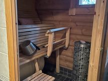 Yhteenveto varusteista: Sauna, erillinen wc, Takka + takkapuut, kuivauskaappi, pyykinpesukone, TV. Keittiössä hyvä varustus. Kesällä käytössä kaasugrilli takaterassilla ja terassiryhmä.