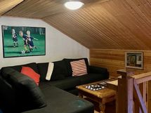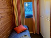 Oikeat sängyt kaikille: alhaalla 2 makuuhuonetta (yksi 2 hengen ja 1 yhden hengen), ylhäällä hyvät makuupaikat runkosängyin ja seisontakorkeus ja sermillä voi erottaa omaa rauhaa. Ylhäällä oma viihtyisä sohvanurkkaus.