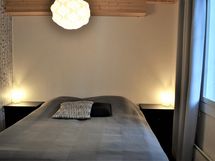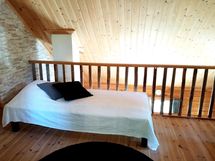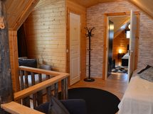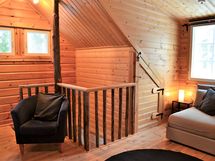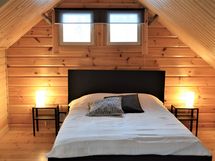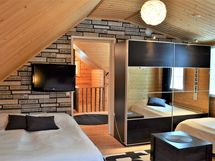 Yläkerran makuuhuoneessa kaksi parisänkyä, sekä yksi yhden hengen sänky. Toinen yläkerran parisängyistä on jaettavissa kahdeksi yhden hengen sängyksi. Parvella yksi yhden hengen sänky, sekä levitettävä vuodesohva yhdelle.