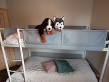 Mökki on varusteltu tasokkaasti viidelle henkilölle. Toisessa makuuhuoneessa on parisänky, jossa mukavat joustinpatjat. Toisessa makuuhuoneessa on kerrossänky (90 x 200) kolmelle (altavedettävä lisäsänky) sekä hyvin varusteltu etätyöpiste. Mökissä on kaksi WC:tä sekä reilusti säilytystilaa.
