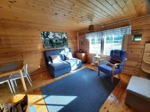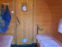 Makuusopissa 2 sänkyä. Tuvassa vuodesohva kahdelle.