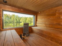 Sähkökäyttöinen kiuas, Leveät lauteet, Ikkuna ulos, Vilpola