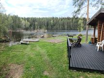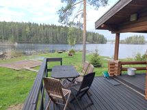 Vuokrataan toukokuun lopusta - syyskuun loppuun Honka I 30m2 pyöröhirsimökki ison vesistön varrelta Leppävirran Oravikoskella .