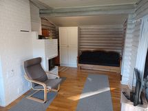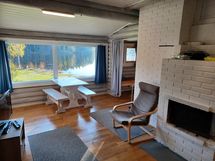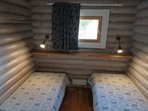Hirsimökki 80- luvulta , Olohuoneessa vuodesohva , keittiösyvennys , kaksi makuualkovia , joissa molemmissa kaksi vuodetta , sauna (puulämmitteinen kiuas ja suihku saunassa) , jenkkijääkaappi, kahvinkeitin, mikroaaltouuni, vedenkeitin, astianpesukone, käyttövesi tulee vesimittarin kautta .