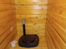 Polttopuuliiteri ja Biolan komposti toiletti erillisessä piharakennuksessa.