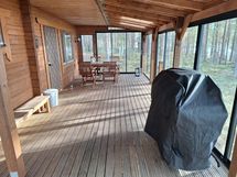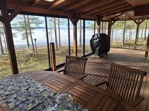 HUOM. Lasitukset asennettu saunan ja mökin terasseille keväällä 2025. Osassa kuvissa ei lasitukset näy koska kuvat vanhempia. Kaikki mökin ja saunan kuvat päivitetään kesän 2026 aikana, kun laituri asennettu.