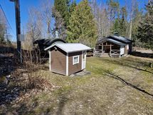 Mökki 50m2, vaja ja puucee 18m2, pihasauna 10m2, leikkimökki 2m2.