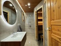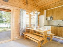 Keittiössä on mm. astianpesukone, jääkaappipakastin, mikro, hella uunilla ja liesituuletin. Lattialämmitys ja ilmalämpöpumppu, joka toimii lämmityksenä ja kesällä tehokkaana jäähdyttäjänä. Alakerrassa on nukkumapaikat kolmelle, parvella lisäksi vuoteet kahdelle. Smart-TV ja 5G netti, jolla etätyöskentely onnistuu. Saunassa on puulämmitteinen kiuas. Mökillä porakaivovesi.