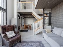 This fantastic apartment is located in Muurame, right at the top of Riihivuori. The apartment has two bedrooms, a toilet, a living room with a separate loft, a kitchen with a dining area and a bathroom with a toilet. The apartment also has its own sauna and spacious balconies on the ground and upper floors. The apartment is located only 400 meters from the Riihivuori Ski Center!