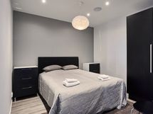 The apartment is fully furnished and you only need to bring your personal belongings. The furnishings include a fully equipped kitchen, high-quality furniture and a dishwasher. In the bathroom you will find a washing machine and a tumble dryer.