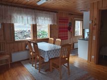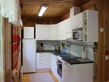 Varustukseen kuuluu sähköt, sähköliesi ja -lämmitys, varaava takka, jääkaappi-pakastin, juokseva kylmä- ja lämminvesi, astiat ja ruoanlaittovälineet, astianpesukone, mikro, kahvinkeitin ja vedenkeitin, leivänpaahdin, TV, radio ja pölynimuri. Ilmanlämpöpumppu ala- ja yläkerrassa. Keittiö pintaremontoitu 2022.
