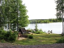 Yläpihalla on puuliiteri, grillipaikka, pihakalusteet ja parkkitilaa ja nurmikkoisella alapihalla on soutuvene ja laituri. Alapiha on tilava ja ranta syvenee hitaasti.