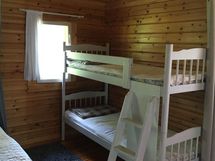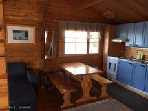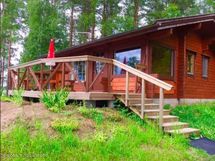 Vuodepaikkoja 4+2 eli parivuode ja kerrossängyt ja lisäksi levitettävä vuodesohva. Mökin koko n. 36 m2 ja mökin edessä rakennettu suuri kuisti. Lisäksi lasitettu kuisti oleskeluun.