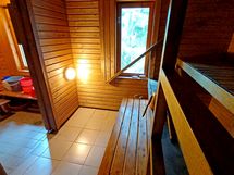 Mökissä on tilava sauna, jonka ikkunasta avautuu kaunis metsämaisema, sekä pesuhuone, jossa on kuumavesipata. Suojaisa kuisti, jossa pöydät, tuolit ja kaasugrilli tuovat lisää viihtyvyyttä.