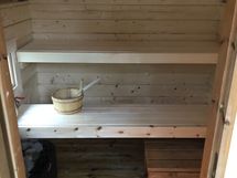 Tunnelmallinen kotasauna, joka luo ainutlaatuisen mökkifiiliksen.
