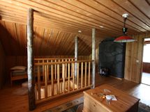 Mökin lämmöstä vastaa varaava takka/puuhella, sekä makuuhuoneen erillinen kamina.