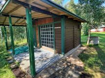 Pihalla on aitta (7 m²) 3-4 hengelle, esimerkiksi nukkumatilaksi.