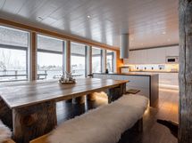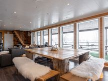 This high-quality 300 m² villa offers the perfect luxury retreat for large groups, accommodating up to 24 guests in six spacious bedrooms. Located right next to Ellivuori Ski Center, the villa combines modern comfort with an elegant atmosphere. It features top-quality appliances, a cozy fireplace, and stylishly furnished interiors throughout.