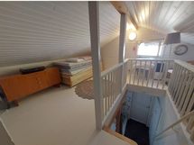 Yläkerrassa neljä mökkisänkyä (leveys 80cm). Alakerrassa levitettävä sänky kahdelle (leveys 160cm).