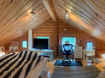 - Päämökki isolla parvella max 6 hlö: hyvin varusteltu keittiöllä, sisävessalla, suihkulla ja saunalla n.100m2 - alkaen 220e/yö.