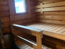 - Hirsimökki 2 harmaa max 3hlö: n.30m2 sähköllä, pienellä keittiöllä, varaavalla takalla ja ulkovessalla - alkaen 110e/yö