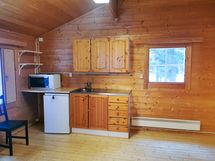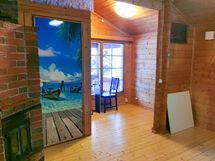 Loma-asunto jossa tupakeittiö, ruokailutila, makuuhuone ja sauna noin 32 m2 sekä puucee.
