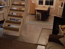 Alakerrassa makuuhuone, keittiö, olohuone ja wc jossa suihku ja sähkösauna)