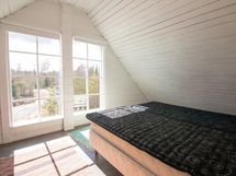 Yläkerrassa makuuhuone ja aulatila.